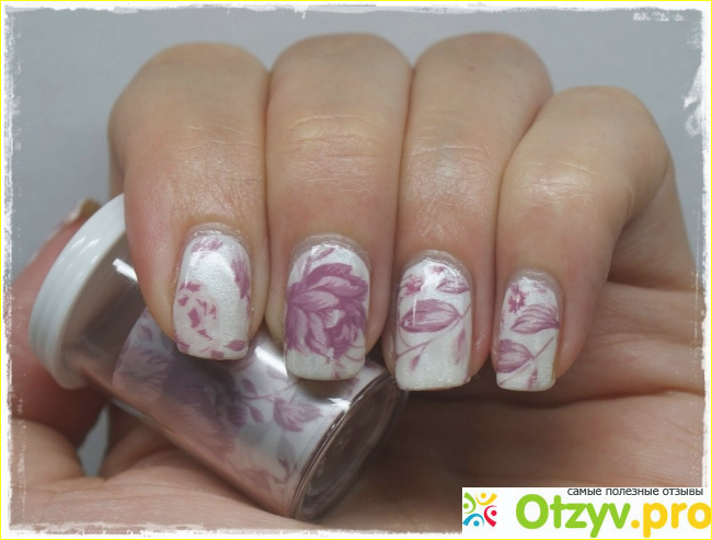 На начальном этапе работы с фольгой лучше всего выбрать простые варианты. Одним из них является переводной. Такой расходный материал продается в рулонах. Для работы нужно отрезать небольшой кусочек ленты и после этого приложить рисунок к ногтю. Изображение сразу же переведется на ногтевую пластину. А чтобы оно держалось долго нужно сверху его закрепить прозрачным лаком или закрепителем. В последнем случае маникюр будет держаться на много дольше.