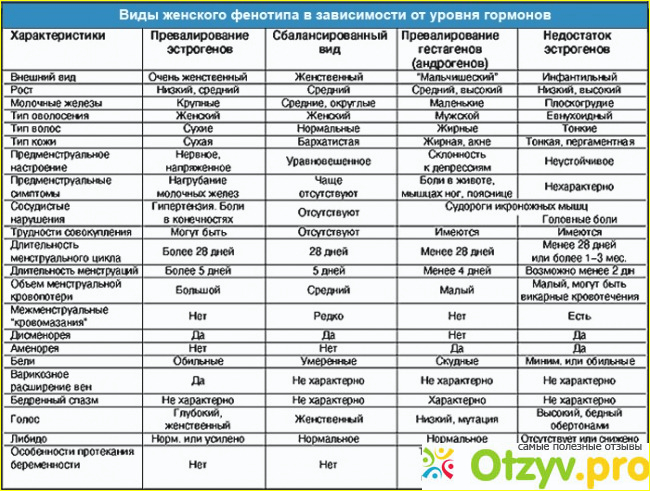 Так, женщины могут иметь повышенное содержание эстрогенов, женских половых гормонов, или же наоборот - прогестерона, мужского гормона. Определить это несложно исходя из внешних признаков - достаточно воспользоваться таблицей, приведенной ниже.