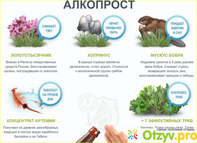 Алкопрост является достаточно сильным препаратом, с помощью которого удается легко и просто избавиться от алкоголизма. Кроме того что средство устраняет зависимость, средство помогает восстановить внутренние органы и улучшить состояние здоровья, ведь за время употребления алкоголем, внутренние органы человека значительно пострадали. Особенностью данного средства является тот факт, что этот препарат не состоит из вредно действующих компонентов, в его составе присутствуют только натуральные компоненты, которые благоприятным образом воздействуют на здоровье человека и действительно помогают устранить сильную зависимость по алкоголю.