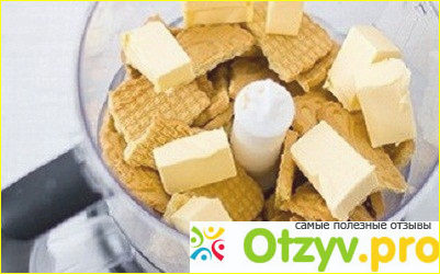 В кухонный комбайн с насадкой-ножом добавьте печенье и порезанное на небольшие кубики сливочное масло. Измельчите продукты до состояния мелкой, почти однородной крошки.