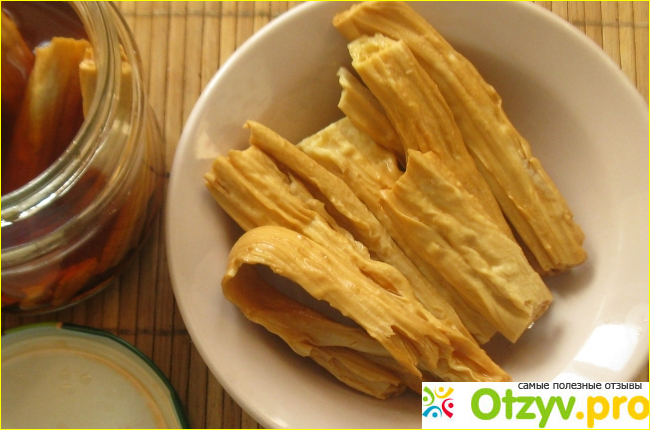 Этот продукт еще называется фучжу и представляет собой пленку снятую с варенного соевого молока. Ее сушат в подвешенном состоянии и она приобретает сморщенную и скрученную форму, именно это мы и называем соевой спаржей. Продукт поставляется в магазины в сухом виде, и не все представляют как можно приготовить его вкусно.