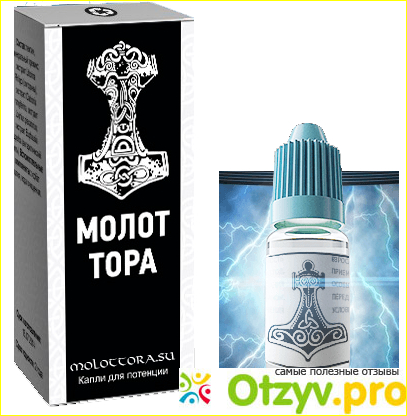 Тор в переводе означает - трижды рожденный. Это средство в своей основе имеет древний рецепт, по которому готовили эффективное средство для мужчин, которое помогало при мужских проблемах и помогало повышать выносливость. Молот Тора это беспроигрышный вариант, который станет для каждого мужчины настоящим помощником и вернет активность в постели. Помимо положительного эффекта, плюс средства в его удобном применении. Большинство препаратов, которые сейчас есть, дают эффект только в период их применения. Как только мужчина прекращает принимать капли, эффект сразу исчезает. Молот Тора дает длительные результаты и после окончания курса, эффект еще будет сохраняться на протяжении нескольких месяцев. Поэтому, нет необходимости пить средство постоянно.