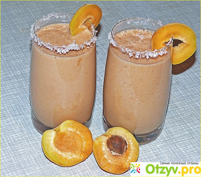При подаче надеть на края стаканов ломтики абрикос.
