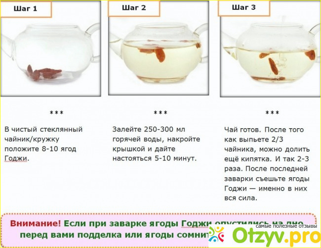 Максимальное количество ягод, которые может съесть взрослый человек не должно превышать 50 штук в день. Метод больше да лучше здесь не работает. Передозировка ягод может вызвать бессонницу, головную боль и тошноту. Не рекомендуется употреблять годжи при сахарном диабете. Для приготовления отвара из ягод годжи ягоды следует уложить в заварочный чайник, залить кипятком и настоять около 30 минут. Ягоды годжи прекрасно сочетаются с имбирем, различными травами, поэтому напиток можно сделать очень ярким с точки зрения вкуса и очень полезным для здоровья.