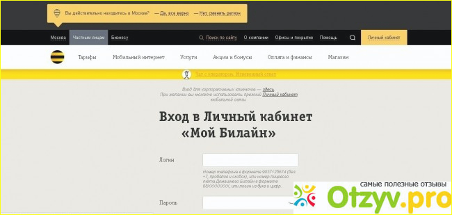 | Сайт: https://moskva.beeline.ru/login/ | |