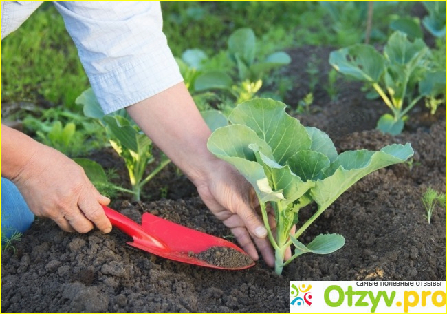 Расстояние между кустиками рассады капусты должно быть не меньше 30-40 см. Не забудьте добавить перегной.