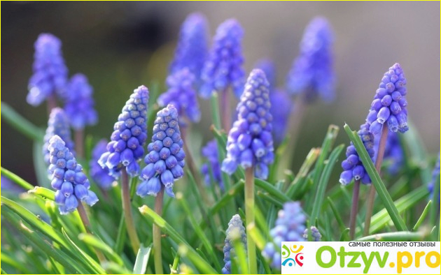 Прежде всего хочу отметить то, что мускари очень красивый цветок, хоть и простой, но как раз в такой простоте и заключается его прелесть. Мне нравится его нежный аромат. Заходишь в комнату и наслаждаешься ароматом от его цветения, пахнет сладко и нежно. Само растение очень похоже на колокольчики, но более благородное и шикарное. Оттенки при цветении получаются самые разнообразные, чаще всего это насыщенные тона фиолетового, желтые, розовые. Стебельки тонкие, на них расположено большое количество мелких колокольчиков и за счет этого буйного цветения не видно листочков. Растем мускари хоть и стебельками, но напоминает в период цветения кустик. Сажать можно в небольшие горшки, потому что не сильно разрастается.