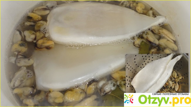 Свой морской коктейль будем готовить сообразно личным предпочтениям. У меня на момент создания рецепта были только кальмары и мидии.