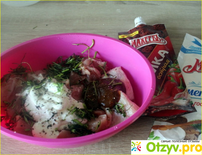Против такого маринада тоже существует масса противников. Не знаю почему, но мясо, замаринованное на майонезе вперемешку с кетчупом получается тоже вкусным и по-своему интересным.