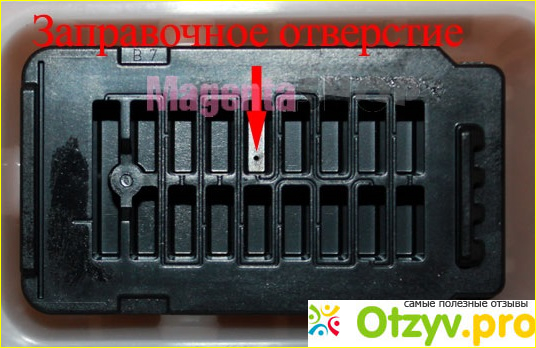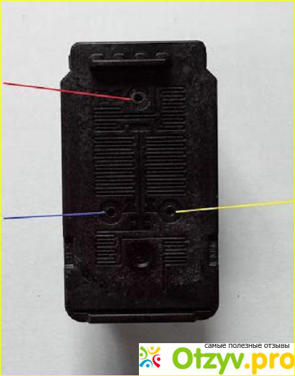 Включаем наше многофункциональное устройство, открываем отсек с картриджами, извлекаем их. Достать картриджи не составит труда, они легко отщелкиваются. Какой из них где стоял, там указано. Так что устанавливая обратно, не перепутаете. Берём картридж и аккуратно снимаем наклейку. Под наклейкой у цветного картриджа вы увидите три маленьких отверстия. У картриджа с чёрными чернилами, отверстие одно. Эти отверстия очень маленькие, нам понадобиться шило или толстая игла, для того что бы сделать отверстия чуть побольше (для того что бы шприц с иглой проходил свободно). Сделав дырочки побольше, наполняем шприцы краской и вводим в картридж согласно описанию на наклейке, каждый цвет в свою дырочку. Примерно 4 миллилитров в каждую дырочку. Углубляйте шприц не более чем на сантиметр, при введении чернил должен выходить воздух, следите за тем что бы краска не переполнила картридж. Если краски залить очень много, она начнёт вытекать. Старайтесь заполнять без фанатизма. Цветной картридж рекомендуется заправлять поэтапно, сперва жёлтый цвет, далее красный цвет, и последний синий цвет. Если вдруг, краска начнёт вытекать из сопла (снизу картриджа), про макните бумагой или тряпочкой лишние чернила. Аккуратненько протрите, наклейте наклейки обратно на свои места. Вот и всё, картриджи готовы к использованию. Установите их в принтер, каждый в своё место согласно указаниям в самом принтере. Закройте отсек с картриджами, включите питание.