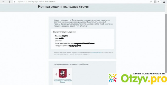4. Окончание регистрации. Этот этап заключительный. В окне появятся регистрационные данные, после чего можно входить на сайт и делать необходимые операции.