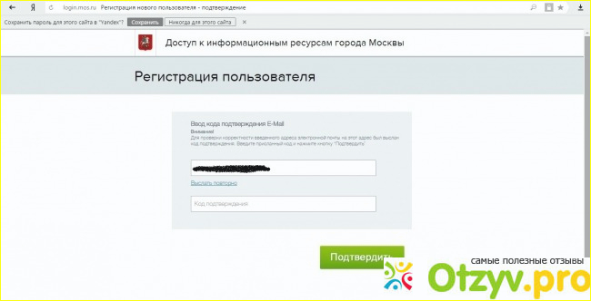 3. Подтверждение регистрации с помощью почты: ввести код, присланный на указанную при регистрации почту в течение трех часов с начала регистрации.