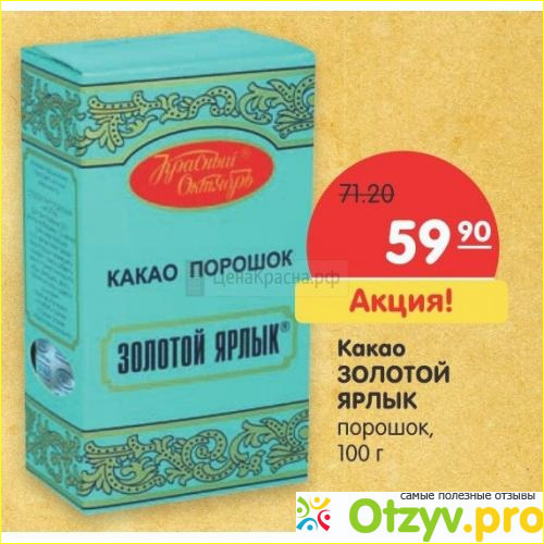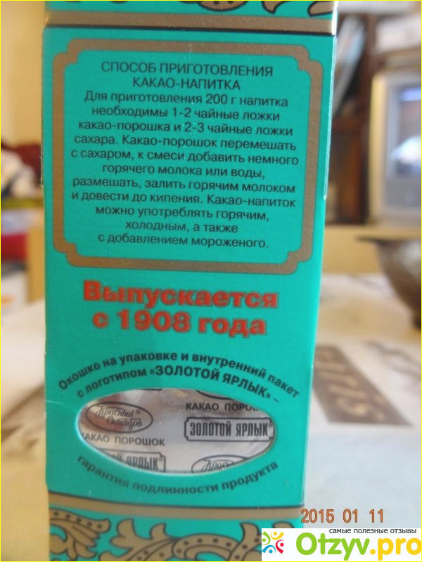 Какао содержит растительный белок, в нем есть витамины группы А, В, Е РР. Оно вызывает выработку серотонина, а значит поднимает настроение. Помогает справиться с головной болью. В нем Много железа и цинка, больше, чем в других продуктах. И удовлетворить нашу потребность в данных микроэлементах можно, выпивая пару-тройку чашек какао в неделю, ну и еще пару долек горького шоколада. Так что от какао только польза! А вред - от примесей. Ну а Золотой Ярлык от Красного Октября - это высоко качественный продукт. Давайте разберемся, как его приготовить.