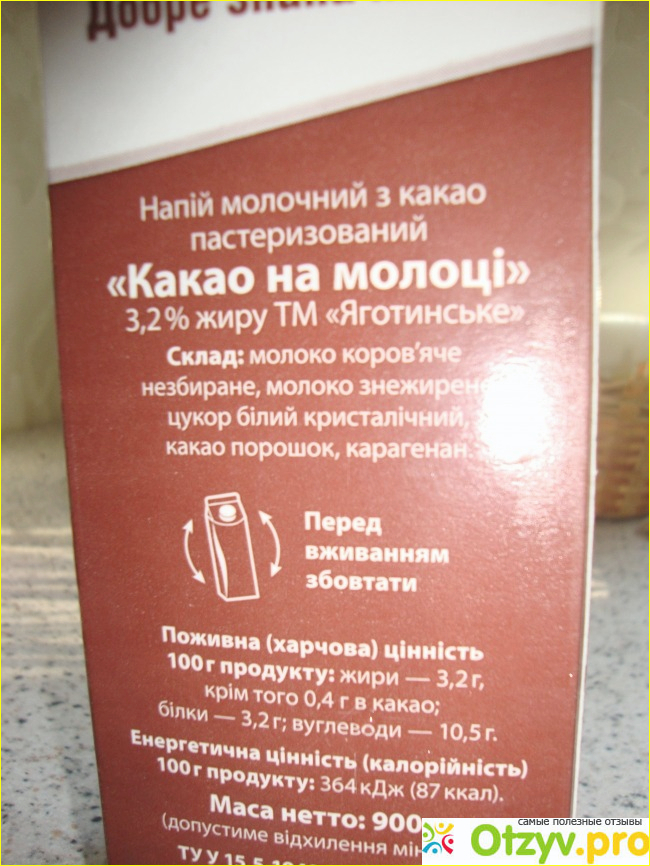 На вкус какао очень-очень шоколадное и густое, прямо не хочется глотать. Состав шоколадного молока полностью натуральный. Продается оно холодным и должно храниться в холодильнике. Также вкусно горячий напиток, который можно разогреть в обычной микроволновой печи.