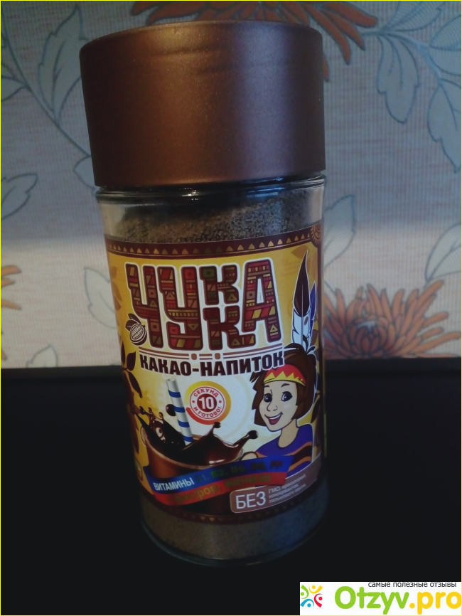 Энергетическая ценность какао не очень высокая: всего 60 ккал. Но с молоком, конечно, напиток получается примерно 200 ккал. Сытный, вкусный и полезный, витаминизированный напиток я рекомендую всем, кто любит какао. Ни пенки, ни осадка, какие появляются при приготовлении обычного какао-порошка, с растворимым гранулированным какао-напитком "Чукка" не будет. И цена вполне доступная: 110 рублей за баночку весом 130 граммов.