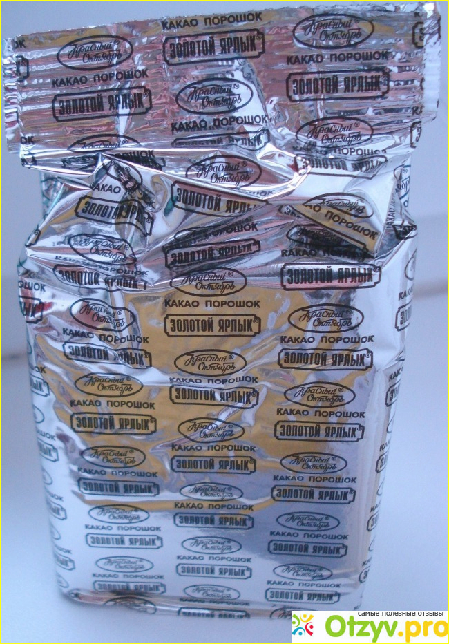 Порошок какао упакован в защитный плотно запаянный пакетик из фольги, предохраняющий от влаги