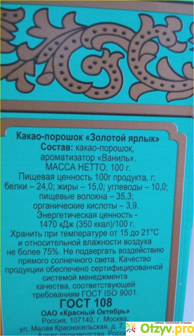 Таким образом, настоятельно рекомендую всем любителям этого продукта именно какао "Золотой ярлык" фабрики "Красный октябрь", поднимите себе настроение на целый день и получите заряд бодрости. На ночь пить данный напиток не советую, тонизирует также как кофе, а то и сильнее
