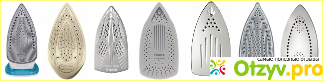 Самые популярные материалы подошвы утюгов, это алюминий, нержавеющая сталь, керамика (и металлокерамика), тефлон. Каждый имеет свои преимущества и недостатки.