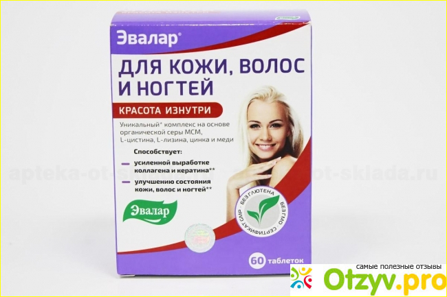 для волос, кожи и ногтей от фирмы "Эвалар."Они считаются как биологически-активная добавка к пище. В упаковке находится шестьдесят таблеток. А принимать их нужно по две таблетки каждый день. В составе таблеток микрокристалическая целлюлоза, экстракт фукуса сухой и некоторые витамины. От него очень хорошо растут волосы и перестают выпадать. Пр расчесывании на расчески вы увидите гораздо меньше волос. Да и кожа лица стает более чистой, уменьшаются поры, ногти растут быстрее. одним словом неплохой препарат Российской фирмы Эвалар. По цене он не слишком дорогой. Доступен для покупки каждому. Вот кажется и вся информация о витаминных комплексах красоты. Буду рада если этот отзыв будет для вас полезен.
