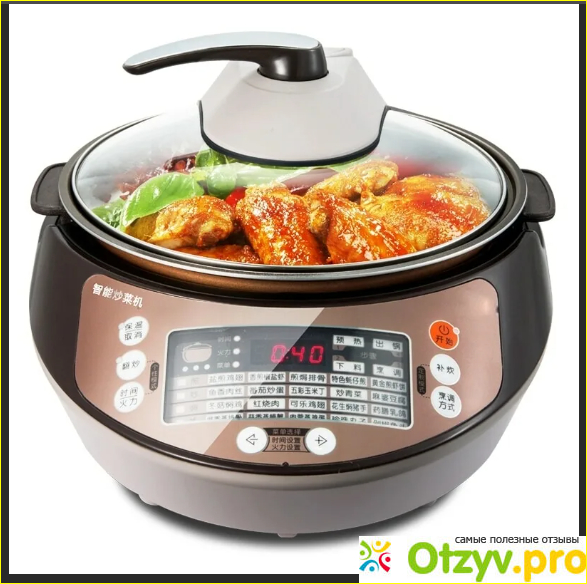 Для того, чтобы приготовить жареное блюдо, достаточно всего лишь выбрать режим сковороды — и жарить то, что необходимо. При желании можно даже накрыть приготавливаемое блюдо крышечкой — она прозрачная, позволяет наблюдать за процессом готовки.