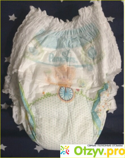 Немного позже, когда малыш подрос, но к горшку еще не привык, мы протестировали подгузники в форме трусиков. Это прекрасная альтернатива обычным подгузникам, поскольку они очень практичные и удобные. Малыш уже начал ходить и может сам расстегивать липучки на подгузниках, а в таких трусиках ему будет более комфортно двигаться, поскольку вместо липучек по бокам есть мягенькие эластичные широкие резиночки, которые прекрасно держат подгузник и не сдавливают животик малыша, когда он хочет присесть. Эти подгузники просто моя любовь. Снимать их вовсе не составит проблемы, поскольку нужно легким движение руки разорвать резиночку сбоку подгузника по шву и все, дело сделано.