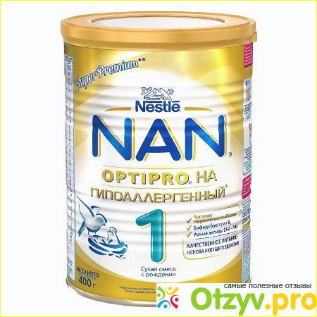 "НАН Гипоаллергенный". Содержит эта смесь очень большой по составу белковый комплекс, полученный по специальной технологии. Этот комплекс имеет значительно сниженную аллергенность, что в результате уменьшает риск развития аллергии.