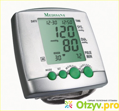 Это автоматический тонометр Омрон. Одевается он на кисть руки при помощи специальных манжетов. Инструкция о том как его одеть, вы найдёте на самом манжете. Прибор сам небольших размеров. Более точный и автоматический. Как видите, ничего сложного в нём нет. Кнопка включения и выключения, старт. Так же кнопка МЕМ. При ее нажатии вам выдаст последние тридцать измерений. Так почему же его нельзя использовать после сорока? Врачи-кардиологи считают, что после сорока лет, пульс на кисти руки существенно меняется в течении всего дня. И поэтому этот прибор вам не нужно использовать, он будет показывать не точное давление. Рекомендуют использовать после сорока плечевой тонометр.