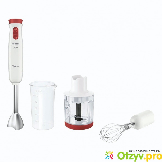Стоит особое внимание уделить именно этому блендеру. Прекрасное соотношение цены и качества. Имеет две скорости и мощность 650 Вт. Является погружным, в комплекте идет стакан 500 мл и чаша на 1 литр. Ножка идет металлическая. Стоимость такого помощника около 3 000 рублей. Нога имеет волно образную форму, благодаря чему. Из под нее жидкость не разбрызгивается. Очень удобно, что насадки меняются нажатием двух кнопок.