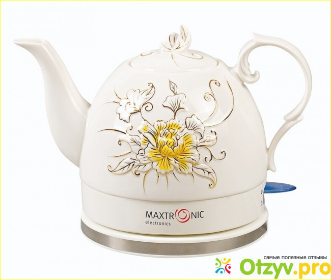 Керамика. Электрочайники из керамики смотрятся стильно и привлекательно. Керамика сохраняет натуральный вкус воды, но вес таких чайников не маленький.