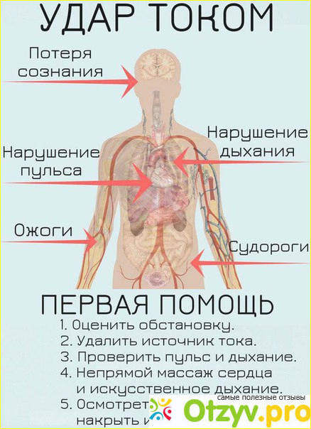 При ударе током незамедлительная помощь может спасти жизнь. Обязательно вызвать скорую. Как можно быстрее освободить человека от действия тока, если он все еще прикасается к частям которые пропускают ток. Действовать при этом стоит очень аккуратно, подойдет сухое дерево, например, палка, или другой предмет, который не проводит электричество. Далее пострадавшего уложить на спину, проверить дыхание, и наличие пульса.