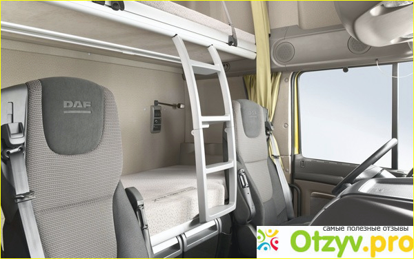 Круиз контроль, электрические стеклоподъёмники, цифровой тахограф, радио с проигрывателем USB, аудиосистема с двумя динамиками, Комбинированная антенна для FM и AM диапазонов, JSM и JPS всё это входит в комплектацию грузовика. Приборная панель выполнена в темном цвете. Кабина имеет отличный обзор, чему ещё способствуют широкие главные зеркала. для них установлен электро подогрев. Daf xf 105, 410 имеет систему торможения двигателя МХ, гидравлический управляемый компрессионный тормоз. встроенный в узел корамысел клапанов. Эта система работает совместно с заслонкой газа выхлопа, выдавая в сумме мощность торможения 210 киловатт при 1500 оборотах в минуту и 320 киловатт при 2100 оборотах. Колесо грузовика на много мощнее и больше , у легкового автомобиля. Размер шины у Daf xf 105, 410 равен 3158 радиусом 22.5 дюйма. Размер колеса 22.59 дюймов. Такое колесо рассчитано на большие нагрузки скорости. Его применение - это магистральные перевозки. На данной машине установлен алюминиевый топливный бак на 850 литров. Этот грузовик один из многих отличных тягочей. Его советуют брать, если планируется проходить около сотни тысяч километров в год. Так как он вынослив, удобен, справляется со всеми необходимыми задачами, и относительно не дорогой.