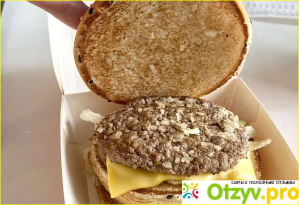Читая мнения других людей об этом блюде я искренне не понимала чего же они имеют против этого предложения. Состав — такой же как и Биг Мак, а по вкусу — куда лучше, нежели то, что было. Во-первых наши кладут реальное мясо, а не ерунду, как была там, а во-вторых — куски мяса большие да и вкус у них лучше.