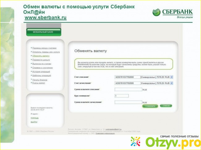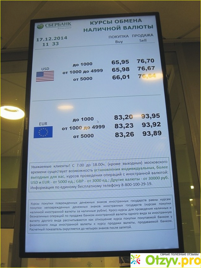 Комиссионные операции при обмене валюты тоже есть: например, если Вам надо разменять 100 долларов на более мелкие, то комиссия составит 1%, захотите сдать сильно потрепанную купюру - 10% (тарифы меняются, уточняйте в Сбербанке).