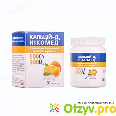 Кальций-Д3 Никомед с апельсиновым вкусом является биологически активной добавкой употребляемой при дефиците кальция в организме. Выпускается в пластиковой банке, в форме жевательных таблеток со вкусом апельсина. По количеству таблеток бывают по: двадцать, пятьдесят и сто таблеток в флаконе.