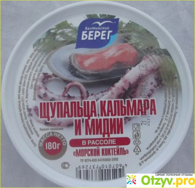 В этот раз моей пробой стали Кальмар щупальца и мидии в рассоле "Балтийский берег". Баночка небольшая, сделана из качественного пластика и оформлена хоть и не очень броско, но информативно.