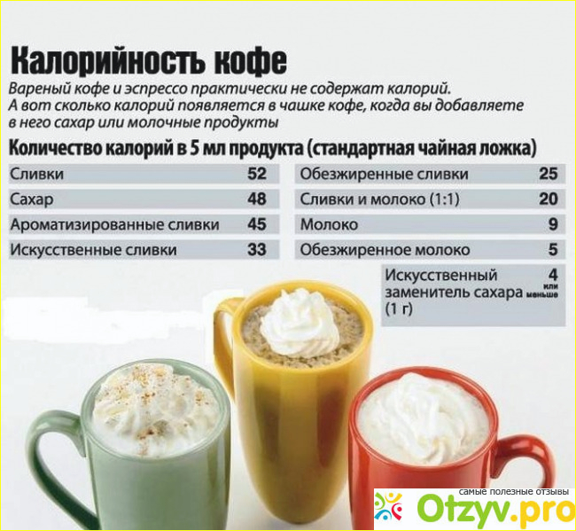 Ведь так трудно в течение дня ограничиться только одной чашкой кофе утром, особенно людям, которые зависимы от этого легального наркотика. Чашка эспрессо утром без каких-либо добавок практически не содержит калорий, если быть точным то они составляют лишь 2 ккал. Но стоит отметить, что это самая кофе без сахара и других добавок и свежий смолена, разница между уже измельченной в пакетах небольшая, но есть. Настоящих ценителей горьковатого вкуса кофе не много и чтобы заглушить этот вкус существует добавок, или уже готовых напитков сладких на вкус. Так, добавление 1 ложки сахара делает этот диетический напиток калорийным на 24 ккал. Коричневый сахар слаще и потому калорийные, 1 ложка содержит 25 ккал. Если Вы решили добавить ложку меда будьте готовы употребить дополнительные 67 ккал. Если вы хотите регулировать количество поступающих калорий, измените количество добавляемого сахара.