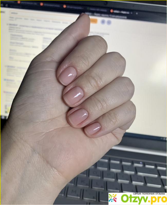 Хорошая цветовая палитра, можно подобрать как на самостоятельное покрытие, так и под френч. Хорошо сочетается с блестками, хорошо смотрятся белые капельки или разводы. Единственное, что немного смущает, это консистенция. Как для меня жидковата, нужно приноровиться. Если вы совсем новичок, то выровнять ногтевую пластину этой базой сразу не получится, работать нужно очень быстро. Зато с ней получается нежный и изящный маникюр.