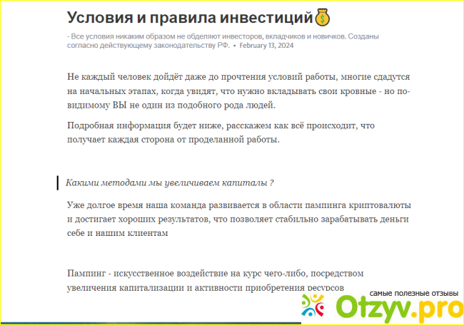Предлагает всем желающим заработать на инвестициях. То есть человек вложил 2000 рублей и на следующий день якобы получит аж 100000 рублей. То есть в 50 раз Но такого к сожалению не бывает Но в чем еще подвох? На следующий день ждет человека еще один сюприз - а это нужно оплатить за страховку в размере 10000 рублей.