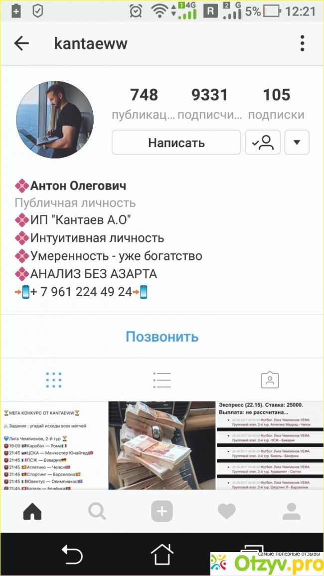 этот человек просто прогнозы не анализирует, как будто подбросить монетку и все. Раскрутка его (одна и услуг) то просто развод. ничего он не вернет, то, что валюта ТНГ принимает говорит что он где то в тех краях обитает, карты киви +7 952 945 97 30, 4890 4945 0269 0514 тиньков, 4276 2600 1190 8836 сбер. номер в картинке, работает он или нет незнаю. Но знаю, что вся информация в ленте этого человека в инсте это чушь, все это призвано только одному завлечь новых людей, чтобы они купили прогноз, все остальное фейк, его прогнозы 1 в 1 есть в бесплатной форме в интернете, а он берет за них 3тр. Будьте аккуратны. Никаких ставок у него не покупайте если не хотите увидеть свои деньги в последний раз. т. к. этот человек просто прогнозы не анализирует, как будто подбросить монетку и все. Раскрутка его (одна и услуг) то просто развод. ничего он не вернет, то, что валюта ТНГ принимает говорит что он где то в тех краях обитает, карты киви +7 952 945 97 30, 4890 4945 0269 0514 тиньков, 4276 2600 1190 8836 сбер. номер в картинке, работает он или нет незнаю.
