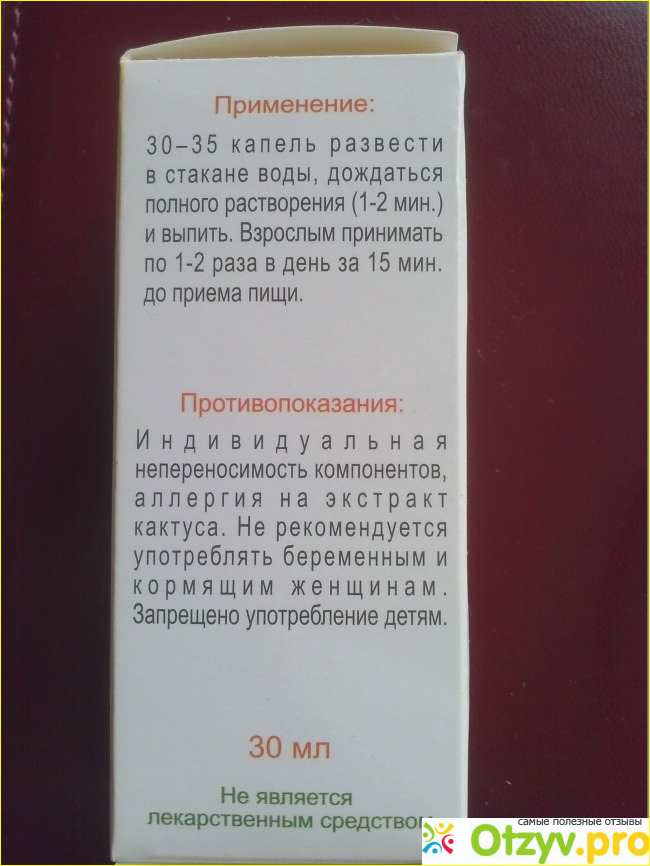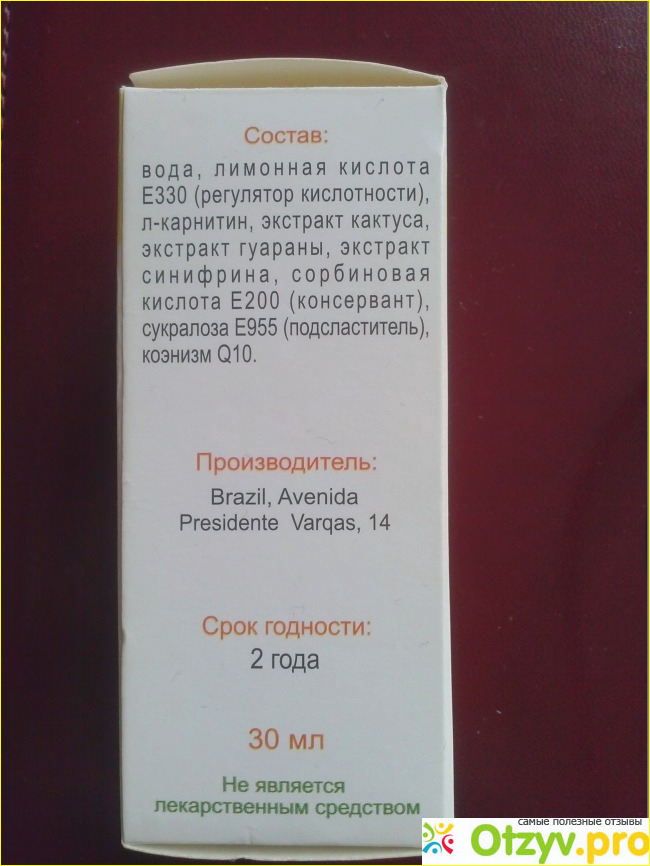 В состав данных капель входят натуральные экстракты: кактуса, гуараны, синифрина, лимонный сок и л-карнитин.