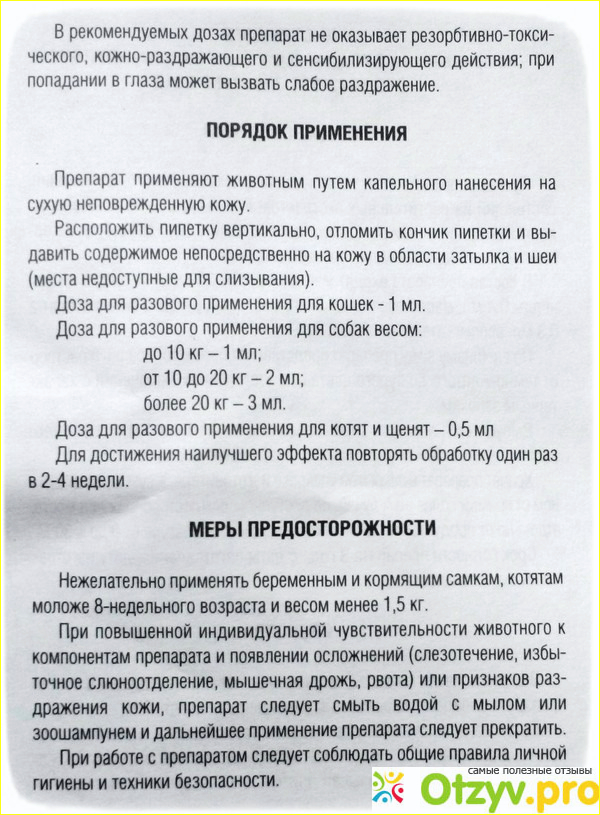 Думаю, объясняется это очень просто-как и большинство средств подобного рода (для животных, противопаразитные средства) российского производства, действующее вещество там в произвольной дозировке, не регламентированная доза( это мне еще ветеринары рассказывали про различные средства и как у нас их делают), либо слишком мало-и на паразитов это не действует, либо слишком много-отравляет все окружающее, не говоря о бедном животном. Покупаю только импортные средства, пусть и втридорога, зато ни разу ничего подобного не было и все помогало. Не знаю, что на меня нашло, когда покупала это средство.