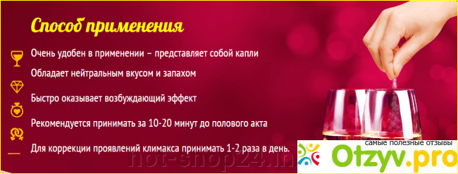 Флакончик небольшой, легко помещается в руке — это на тот случай, если вы хотите принять капля возбудитель прямо во время общения за столом с мужчиной.