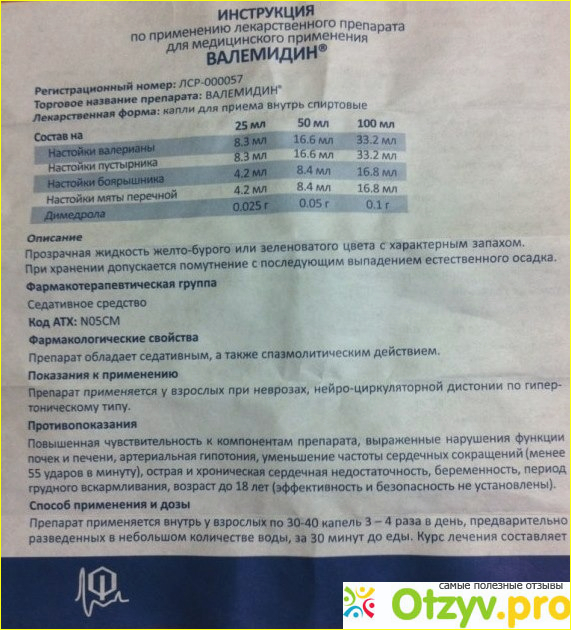 Немножко лучше Валикордина.Собственно, это вновь комментарий свекрови о действии Валемидина, когда начала его принимать по прописанной схеме. Сам препарат, как подобные этой группы, полностью на натуральной основе: мята, валерьяна, пустырник, боярышник, ну и куда же без димедрола. Спиртовые капли вполне приемлемого состава, которые при адекватном приеме не вызвали ни малейших побочных эффектов. Принимала свекровь из по 30 капель 3 раза в сутки, разведя в воде. Схема совершенно не сложная, только приходилось контролировать, чтоб не забывала.