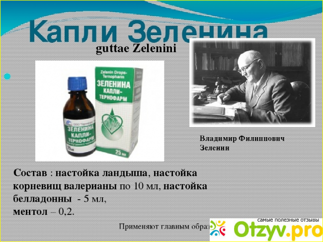 Капли Зеленина — лекарственный успокоительный препарат, основанный на экстрактах растений.