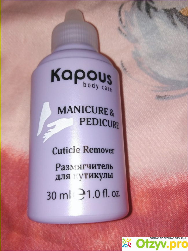 Для себя я выбрала комбинированный маникюр. Мне нравится его делать, но моя кутикула налипшая и тонкая. Чтобы сделать ее более заметной, и срез был бы более безопасным, я начала пользоваться ремувером. Для себя выбрала размягчитель от Капус. За 30 мл жидкости я заплатила 230 рублей. Ремувер предназначен для размягчения сухой и огрубевшей кожи кутикулы и боковых валиков. Оказывает смягчающее и противовоспалительное действие. Можно использовать для маникюра в домашних и в салонных условиях. Время воздействия около трех минут. Таким образом удастся сократить время работы и провести процедуру максимально комфортно, не пересушивая и не раздражая кожу.
