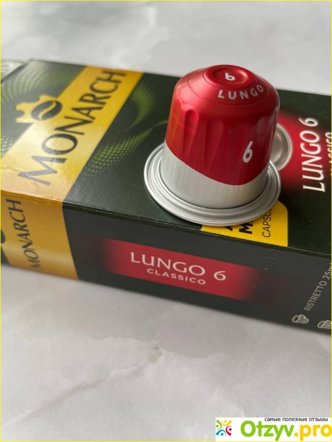 Либо вкус не тот, либо вкус нормальный, но цена высокая, либо с капсулами что-нибудь не то. Например, не очень нравятся капсулы из бумаги. Из них кофе какой-то не такой, жидковатый. А есть фирмы, капсульный кофе которых покупаю уже не один раз. Например, монарх (бывший якобс). Все в них устраивает: разные по крепости вкусы, алюминиевые капсулы, цена, периодически акции на них бывают. Не так давно увидела, что появилась новинка монарх, а именно кофе под цифрой 6. Это капсулы с коробочкой в красных тонах. Я, как любитель мягкого кофе, купила попробовать. Сразу скажу, что кофе мне понравился. Готовится просто, меньше минуты - заправляю капсулу и нажимаю кнопку. Кофе приятного шоколадного цвета, ароматный и с хорошей пенкой. Запах у него тонкий, немного напоминает что-то ореховое вперемешку с кофейными зернами. Вкус приятно горький, без намека на кислинку. Обычно пью кофе с небольшим количеством растительного или коровьего молока. Несмотря на мягкий вкус, молоко его не портит, а по-другому позволяет раскрыть вкус кофе. В общем, понравилась эта разновидность, плюс одна в коллекцию моих видов кофе, которые буду брать на постоянной основе.