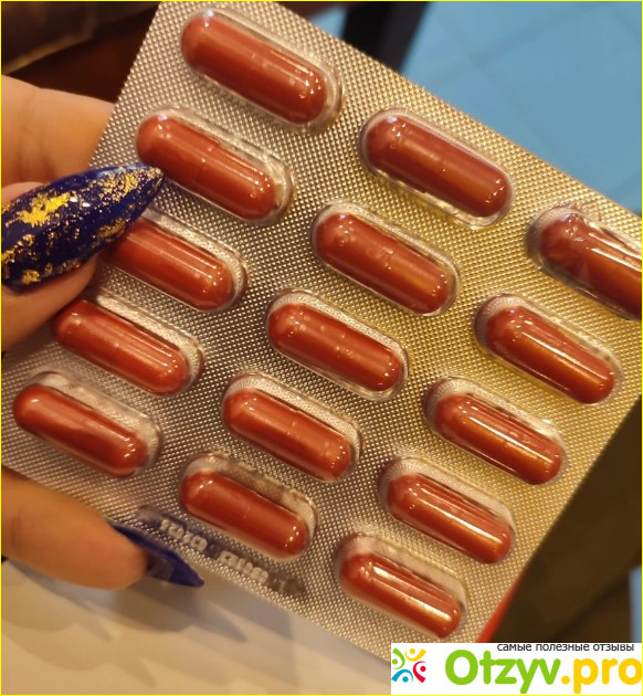 Коробка у них крупная и вмещает 4 или 8 блистеров по 15 капсул в каждом. На самой коробке указывается стандартная информация как принимать препарат, данные о производителе, срок годности и так далее. В остальном ничего примечательного. Капсулы небольшого стандартного размера, коричневые если их раскрыть, то внутри будет порошок песочного цвета очень мелкого помола.