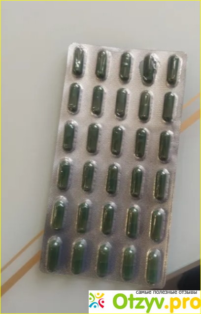 Внутри находится всего лишь 1 блистер на 30 капсул. Капсулы зеленого цвета, что как бы указывает на природное происхождение всех компонентов входящих в их состав. Выдавливаются капсулы легко и проблем с этим никаких нет. Проглатываются также просто. Средство рассчитано на месячный курс приёма так как в день необходимо выпивать по 1 капсуле.