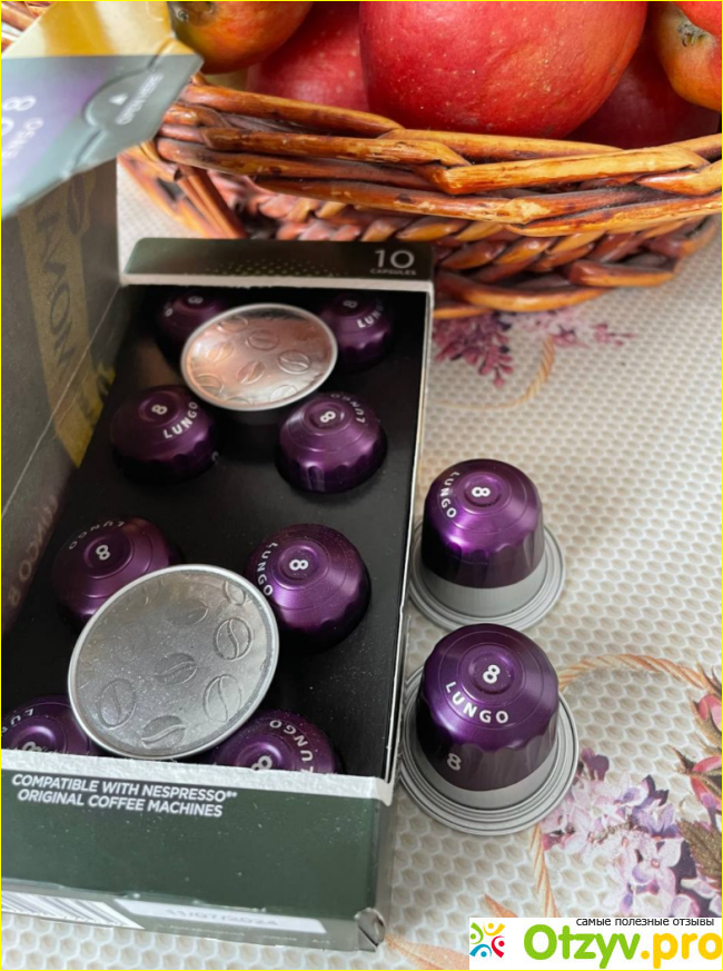 Люблю пробовать новые виды кофе, поэтому каждый раз покупаю разный сорт. Lungo Intenso находится в фиолетовых капсулах. Это арабика родом из Франции.