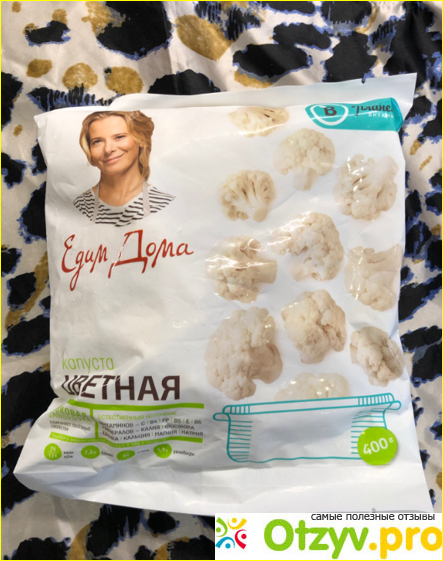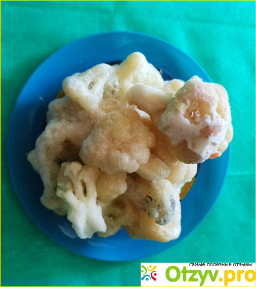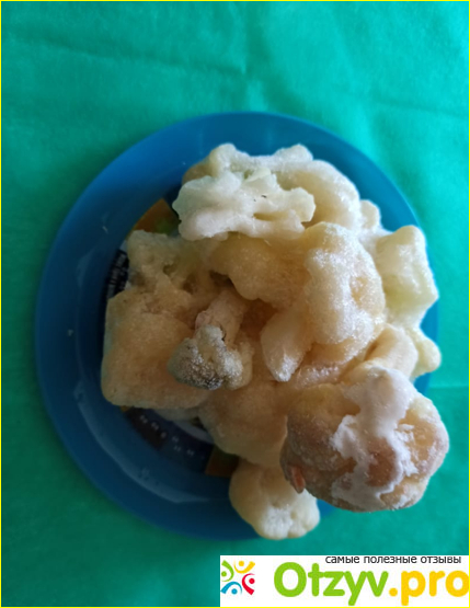 Но все же я попыталась отобрать соцветия получше, чтобы пожарить. Очень хотелось полакомиться цветной капустой и угостить домашних. Оказалось, зря. Сковородка просто наполнилось водой. Откуда она взялась, непонятно. Ведь производитель утверждает, что заморозка сухая! Воды быть не должно. Ладно, я ее слила, включила огонь побольше, вроде капуста пожарилась. Хорошо, что я ее сразу попробовала, а не подала к столу. Очень жесткая, безвкусная, слишком волокнистая. Это что же надо было делать, чтобы цветная капуста стала совершенно несъедобной? К счастью, до этого я пробовала такую же продукцию других производителей. А то совсем бы отказалась от заморозок.